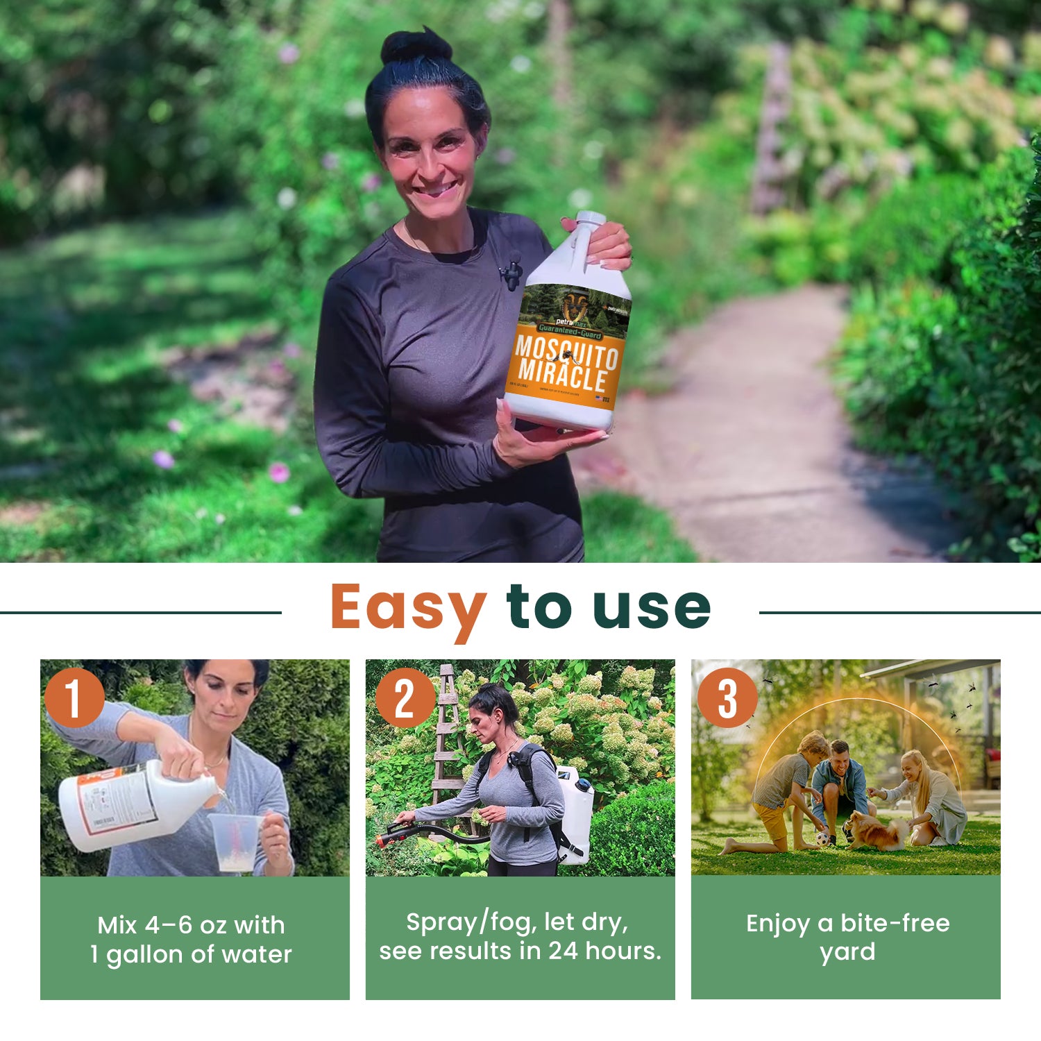 Mosquito Miracle is proven to work without the conventional harsh ingredients. It's a plant-powered essential oil spray that harnesses the power of nature to do the job safely when used as directed.